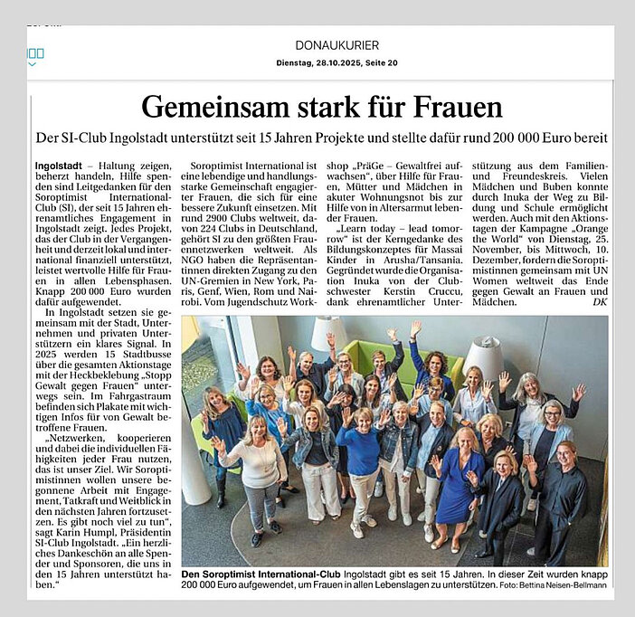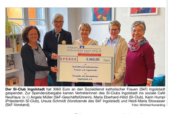 Soroptimist International Ingolstadt übergibt Caritas-Verband großzügige Spende. mehr... (pdf)