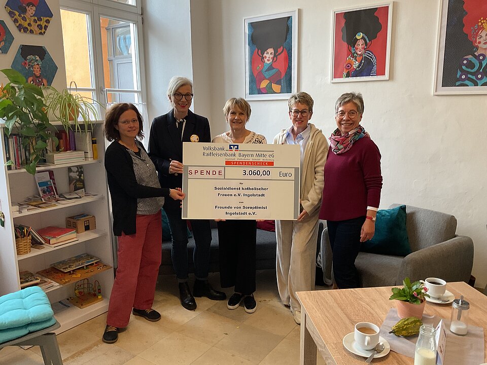 Wir Soroptimistinnen unterstützen das Café "Neuhaus" seit Start im Januar 2024, bringen regelmäßig Kuchen vorbei oder helfen aktiv im Café mit. Für die aufsuchende Sozialarbeit des SkF für Bewohnerinnen in der städtischen Notunterkunft "Am Franziskanerwasser" übergaben wir einen Spendenscheck in Höhe von 3060,- Euro. Wir achten und wertschätzen die professionelle, qualifizierte Arbeit der SkF Frauen und das so vielfältige Angebot für benachteiligte Frauen, Kinder, Männer und Familien.